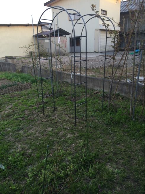 先日組み立てたアーチ用に、ピエールどロンサールを植えました(((o(*゚▽゚*)o)))
